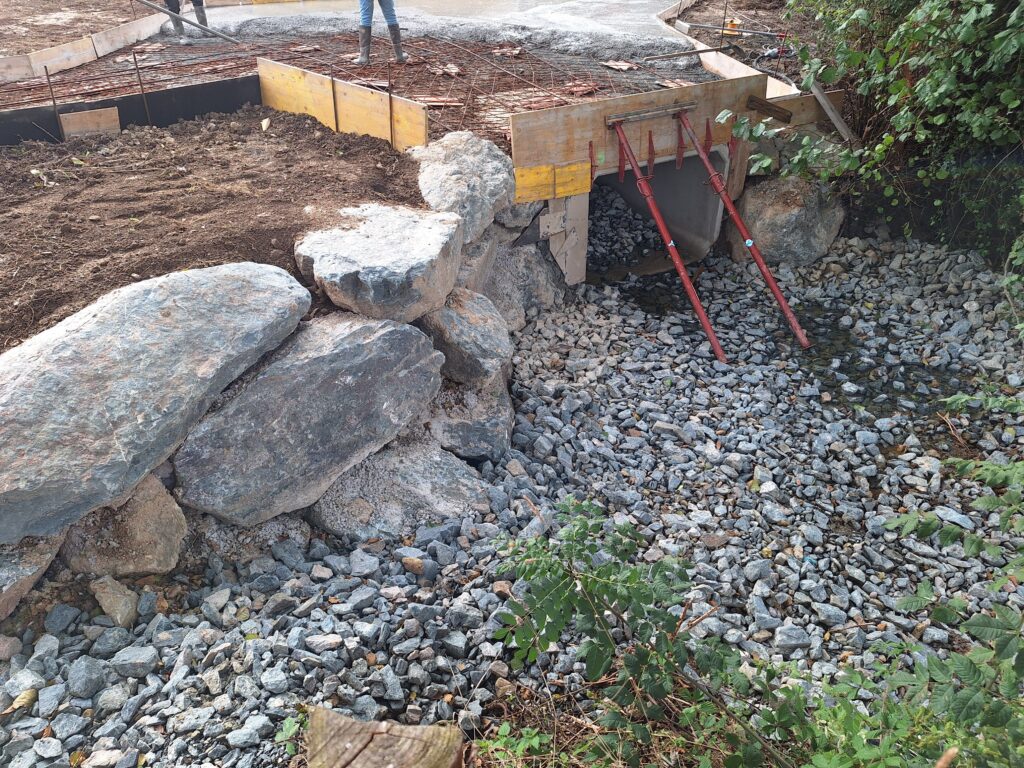 Un enrochement a été réalisé en amont et en aval de l’ouvrage dans le but de protéger ce pont cadre lors des crues.