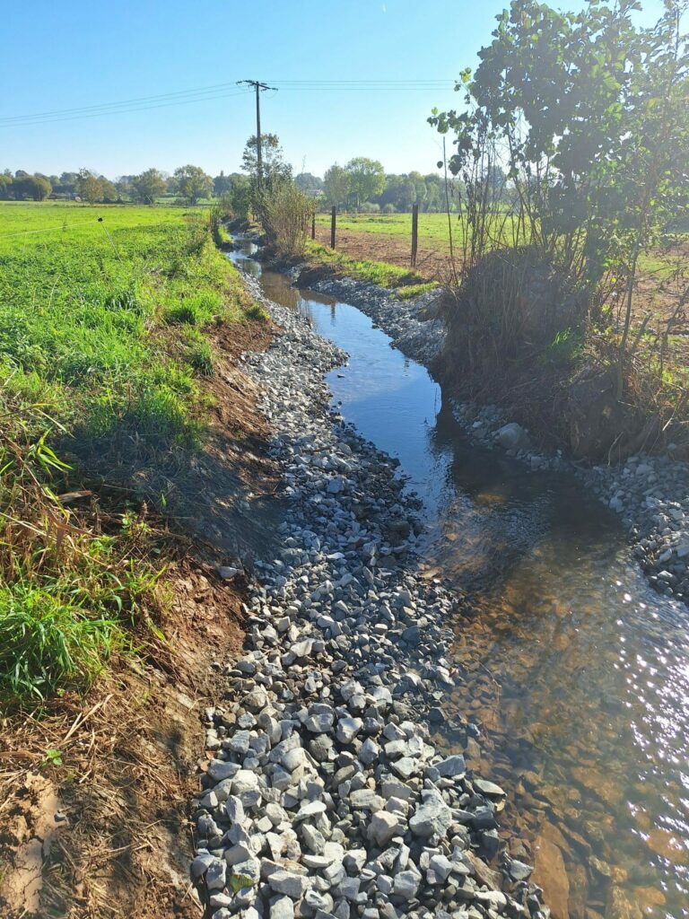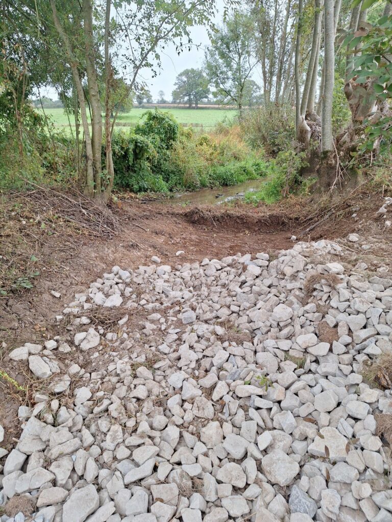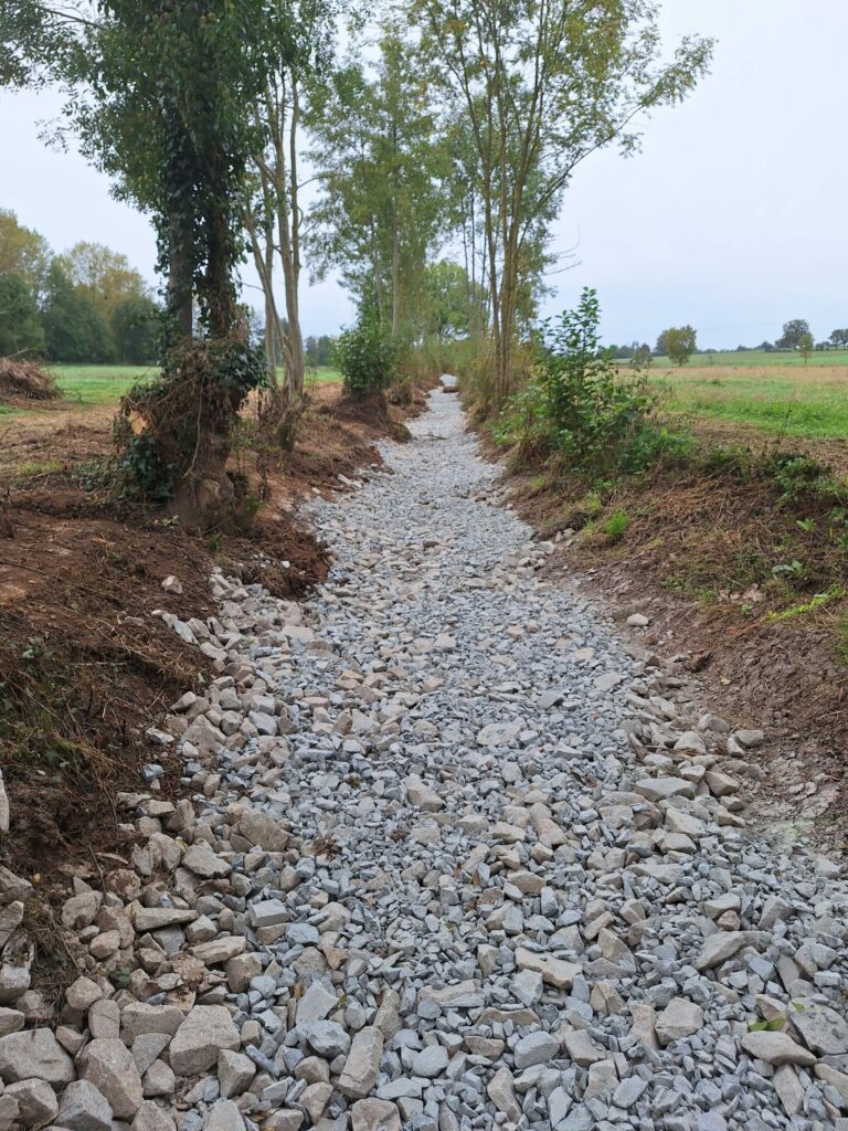 Réalisés par Eive Agence Niort sur la commune de Rives-du-Fougerais, les travaux consistent en la création de fosses et de radiers, avec apport de matériaux (cailloux) en provenance de la carrière d’Antigny. En complément, des clôtures et des abreuvoirs seront installés.