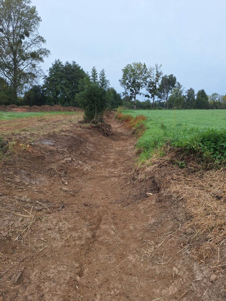 Dans le cadre du CTEau Vendée amont Mère, le cours d’eau du Petit Fougerais a été remis dans son lit naturel en amont du pont Raffin.